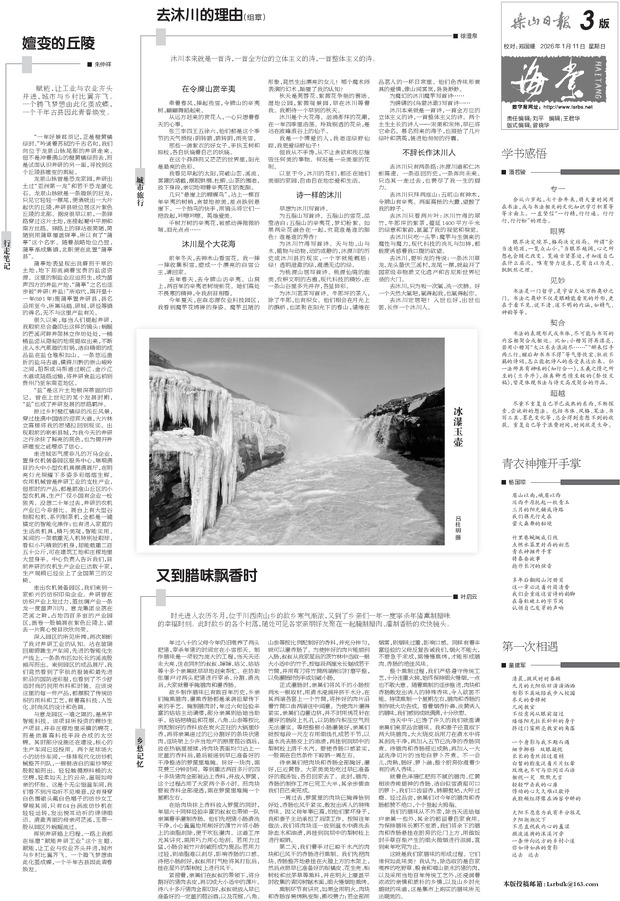 嬗变的丘陵 去沐川的理由(组章) 冰瀑玉壶 又到腊味飘香时 学书感悟 青衣神摊开手掌 第一次相遇