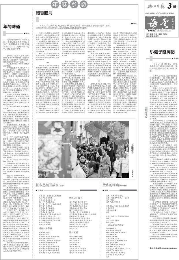 年的味道 腊香腊月 喜迎新春 把乡愁搬回故乡(组诗) 故乡的呼唤(外一首) 小湾子隧洞记