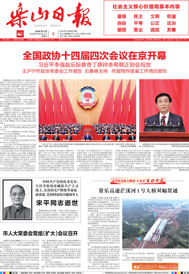 全国政协十四届四次会议在京开幕 宋平同志逝世 市人大常委会党组(扩大)会议召开 资乐高速茫溪河1 号大桥双幅贯通