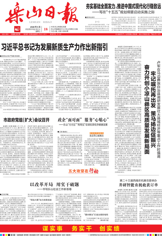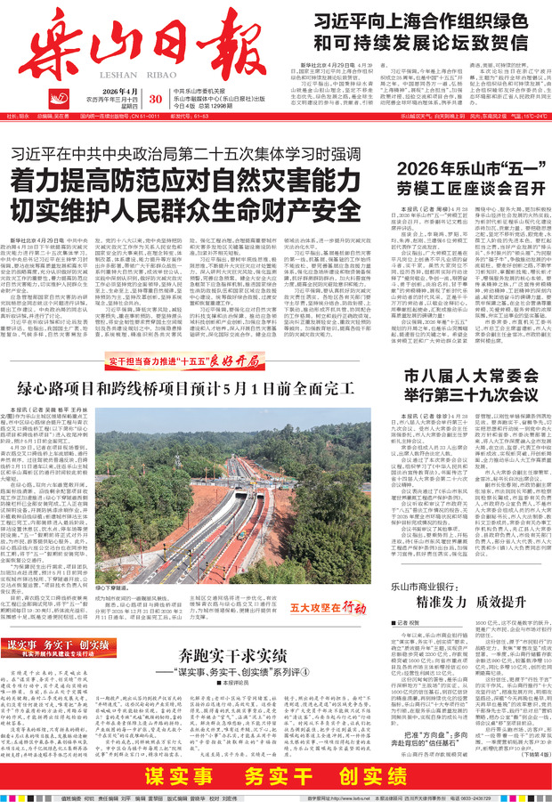 乐山日报社主办 乐山日报社出版 国内统一刊号:CN51-0011代号(61-53)